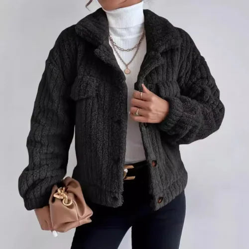 Winter Rabbit Fur Plush Jacket Turn-Down Collar Shirt with Fleece Lining Thickened Plush Jacket