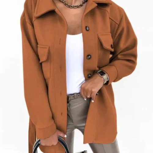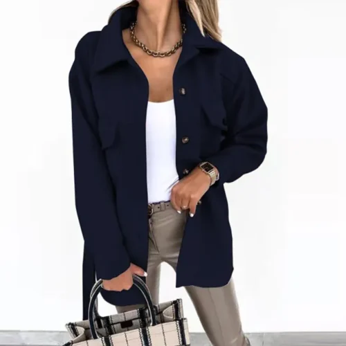 2025 Amazon Winter Cross-Border New Women’s Long-Sleeved Elegant Pure Color Lapel Button-Up Woolen Jacket
