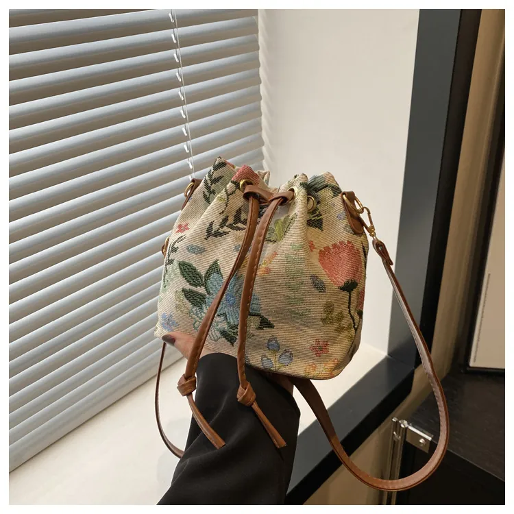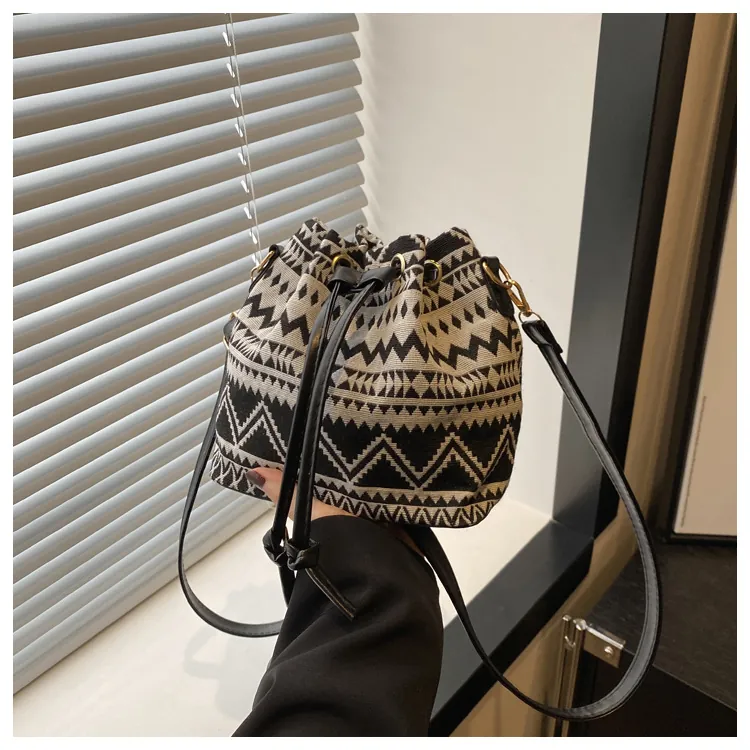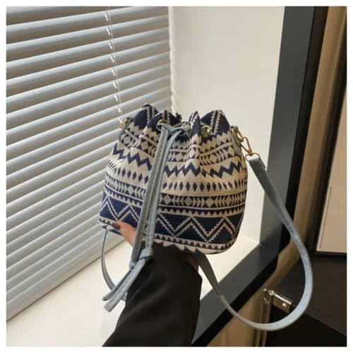 Add a touch of vintage charm to your wardrobe with this Retro Style Women’s Drawstring Bucket Shoulder Bag. Designed with artistic ethnic patterns and a relaxed bucket silhouette, this bag blends style, culture, and everyday practicality.